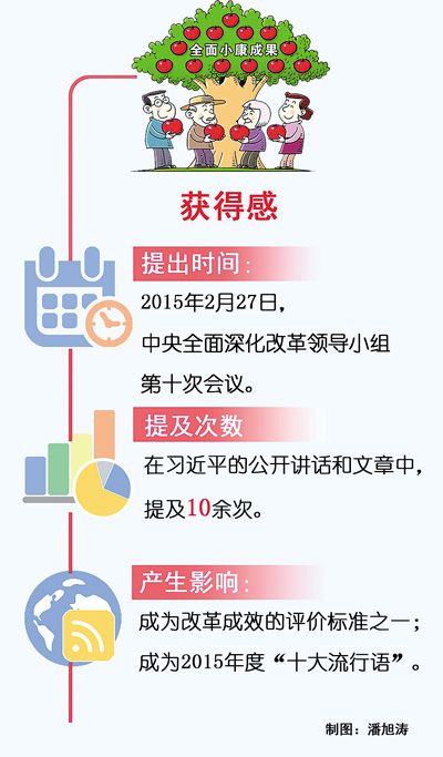推動各項政策落地、落細、落實,讓民營企業(yè)真正從政策中增強獲得感。3月4日下午,中共中央總書記習近平看望參加全國政協(xié)會議的民建、工商聯(lián)界委員時,又提到了“獲得感”一詞。“獲得感”提出一年多來,被習近平在不同的場合多次提及,從一個接地氣的新詞成為改革成效的評價標準之一,也成為老百姓切實的感受。 改革成效的評價標準之一 2015年2月27日,在中央全面深化改革領導小組第十次會議上,習近平總書記在公開場合第一次提到“獲得感”。他強調(diào),要處理好改革“最先一公里”和“最后一公里”的關(guān)系,突破“中梗阻”,防止不作為,把改革方案的含金量充分展示出來,讓人民群眾有更多獲得感。 去年,習近平同黨外人士座談時強調(diào),改革發(fā)展搞得成功不成功,最終的判斷標準是人民是不是共同享受到了改革發(fā)展成果。今年2月,中央全面深化改革領導小組第二十一次會議進一步指出,把是否促進經(jīng)濟社會發(fā)展、是否給人民群眾帶來實實在在的獲得感,作為改革成效的評價標準。 獲得感作為改革成效的評價標準之一,與鄧小平提出的“三個有利于”標準一脈相承,是在全面深化改革背景下的豐富和發(fā)展,也是對改革實踐的新認識。 物質(zhì)層面和精神層面的統(tǒng)一 讓人民群眾有更多的獲得感,道出了群眾的心聲。 2016年新年賀詞中,習近平指出,經(jīng)過全國各族人民共同努力,“十二五”規(guī)劃圓滿收官,廣大人民群眾有了更多獲得感。 2010年到2015年,全國居民人均可支配收入從12520元增加到21966元,年均實際增長8.9%,快于同期國內(nèi)生產(chǎn)總值增長。同時,居民收入差距呈縮小趨勢。2010年到2015年,全國居民收入基尼系數(shù)從0.481下降到0.462。建立了統(tǒng)一的城鄉(xiāng)居民基本養(yǎng)老保險制度。全民醫(yī)保體系基本建立。這些都是群眾切實感受到的獲得感。 此外,獲得感還來自精神層面,生活有尊嚴,每個人對夢想追求的接近,這個夢想就是“中國夢”。習近平在十八屆中共中央政治局常委首次同中外記者見面時曾深情地說,人民對美好生活的向往,就是我們的奮斗目標。 通過改革在共建共享中實現(xiàn) 獲得感怎么實現(xiàn)? 人世間的一切幸福都需要靠辛勤的勞動來創(chuàng)造。獲得感既是改革的評價標準,也是改革的目的。改革、共建、共享與獲得感的實現(xiàn),緊緊聯(lián)系在一起。 十八屆五中全會提出,堅持共享發(fā)展,必須堅持發(fā)展為了人民、發(fā)展依靠人民、發(fā)展成果由人民共享,作出更有效的制度安排,使全體人民在共建共享發(fā)展中有更多獲得感。習近平在2016年初調(diào)研重慶時強調(diào),在整個發(fā)展過程中,都要注重民生、保障民生、改善民生,讓改革發(fā)展成果更多更公平惠及廣大人民群眾。 2014年,中央深改組確定的80個重點改革任務基本完成,有關(guān)部門完成108個改革任務,各方面共出臺370條改革舉措。2015年,各領域改革再提速,中央深改組確定的101個重點改革任務基本完成,中央有關(guān)部門完成153個改革任務,各方面共出臺改革成果415條。十八大以來,改革一路攻堅克難,讓群眾享受到實實在在的改革成果。