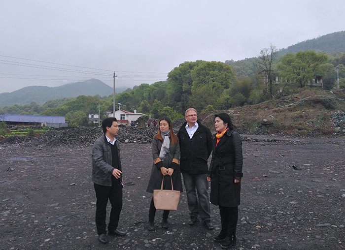 圖為馮文利(右一)陪同考察組一行在安源煤礦矸石山實(shí)地考察。