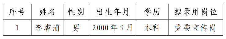 安源管道實業(yè)股份有限公司擬招聘錄用人員公示